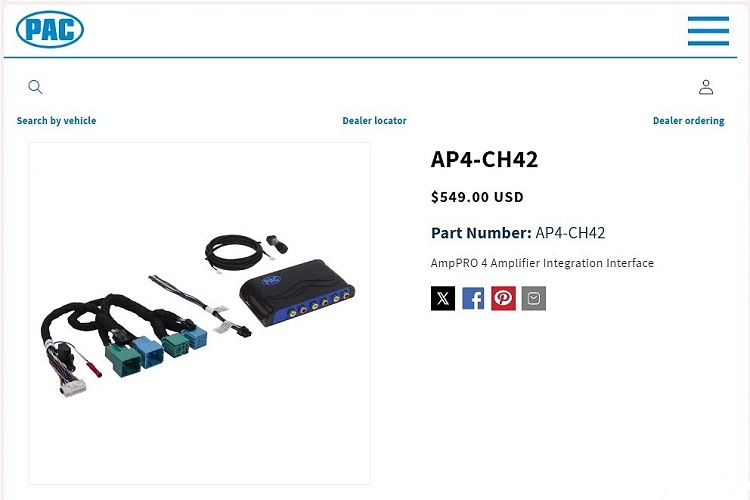 Эти автомобили должны быть оснащены заводским усилителем, поскольку AP4 не